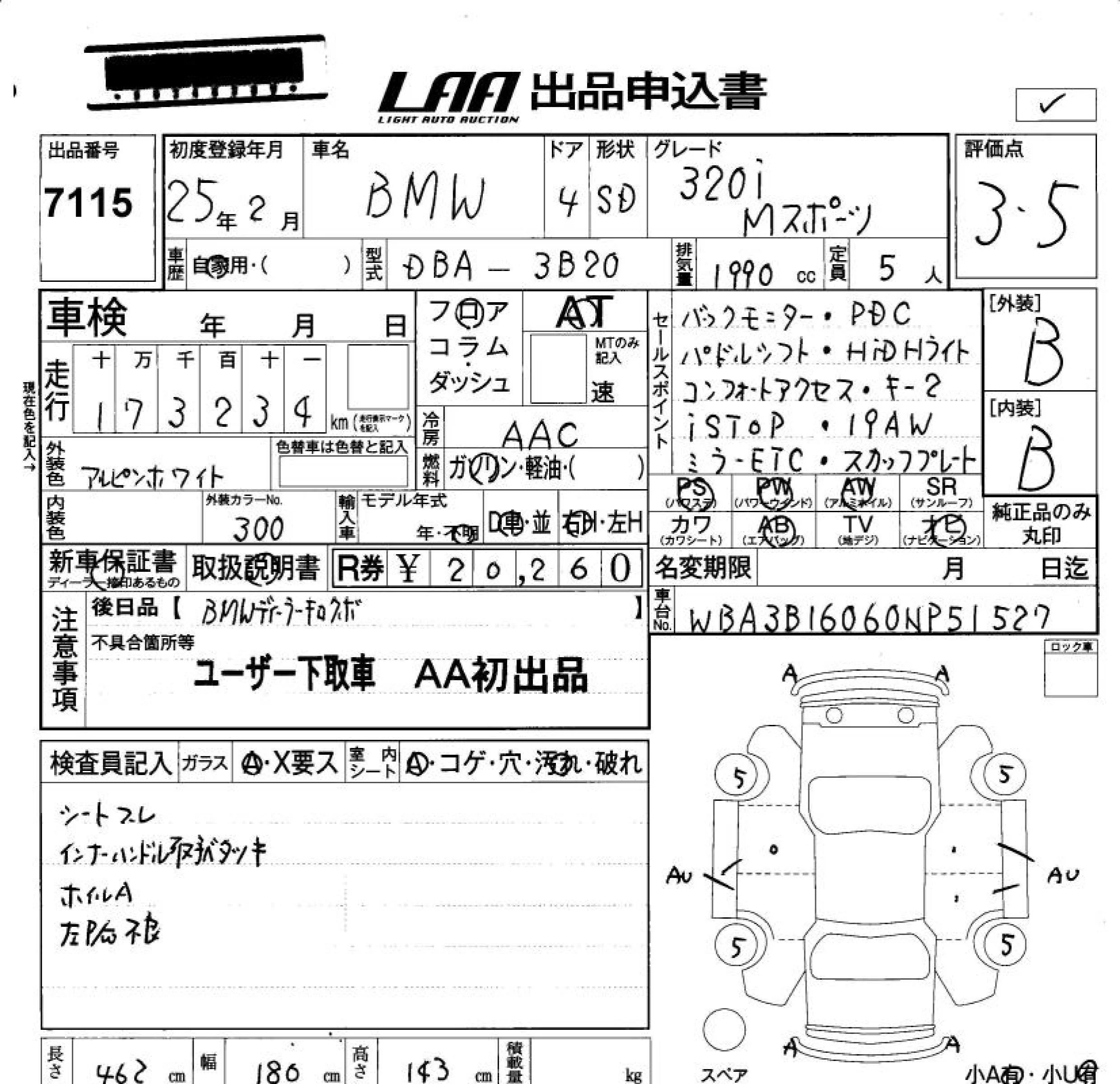 BMW 3-Series с аукциона Японии LAA Okayama лот № 7115