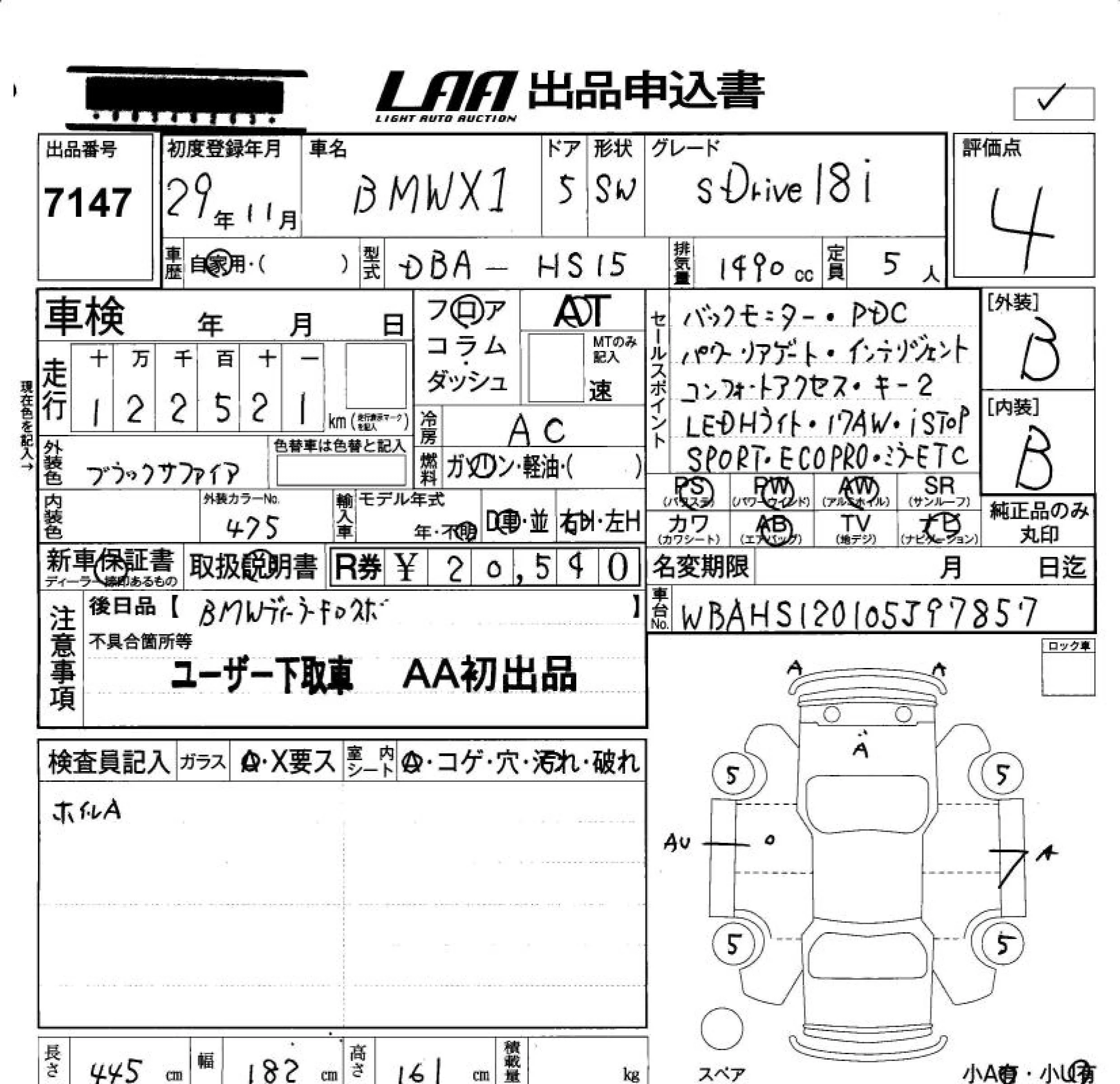 BMW X1 с аукциона Японии LAA Okayama лот № 7147