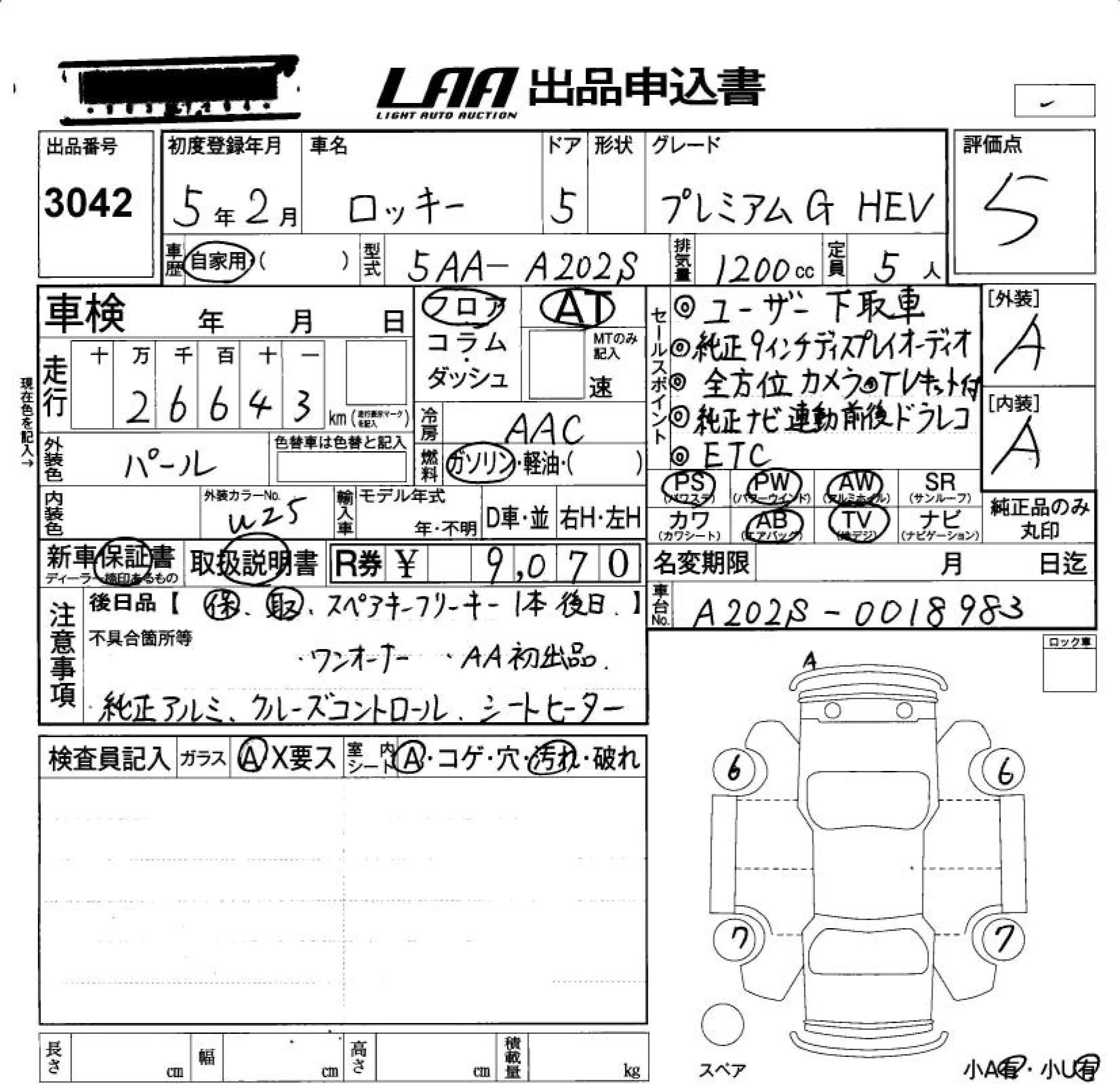 Daihatsu ROCKY с аукциона Японии LAA Okayama лот № 3042