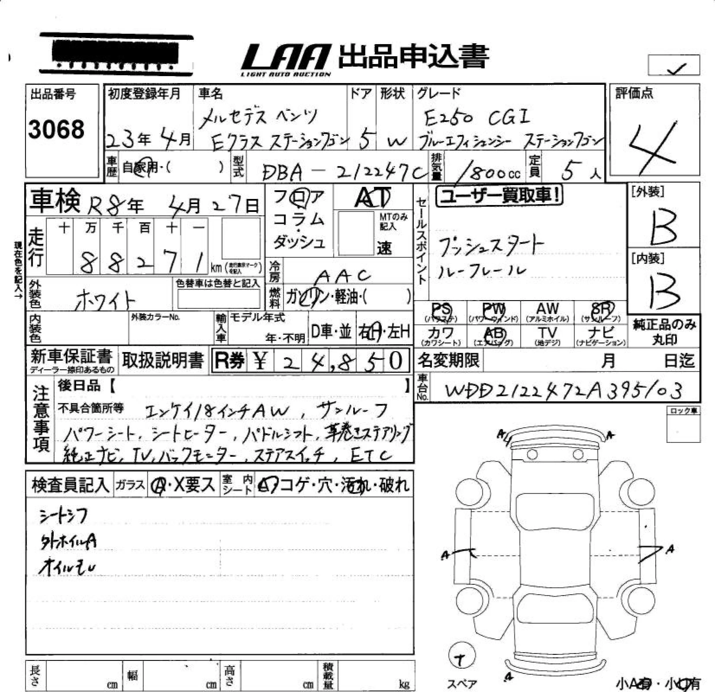 Mercedes-Benz E CLASS WAGON с аукциона Японии LAA Okayama лот № 3068