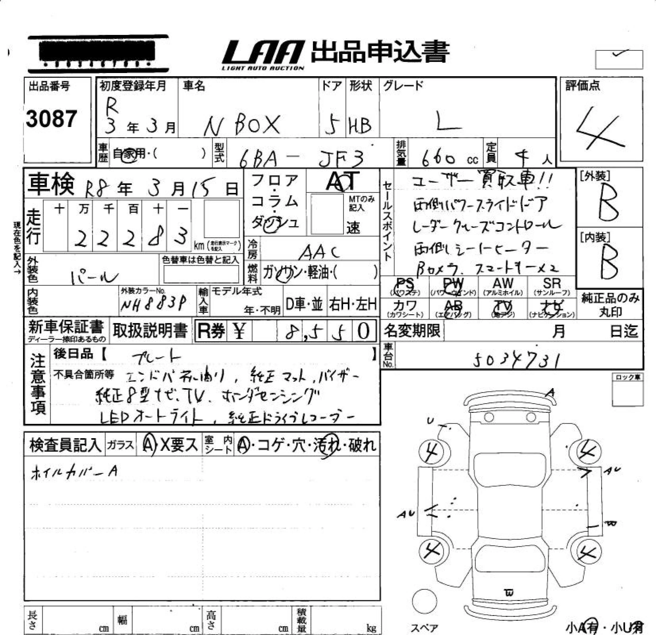 Honda N BOX с аукциона Японии LAA Okayama лот № 3087