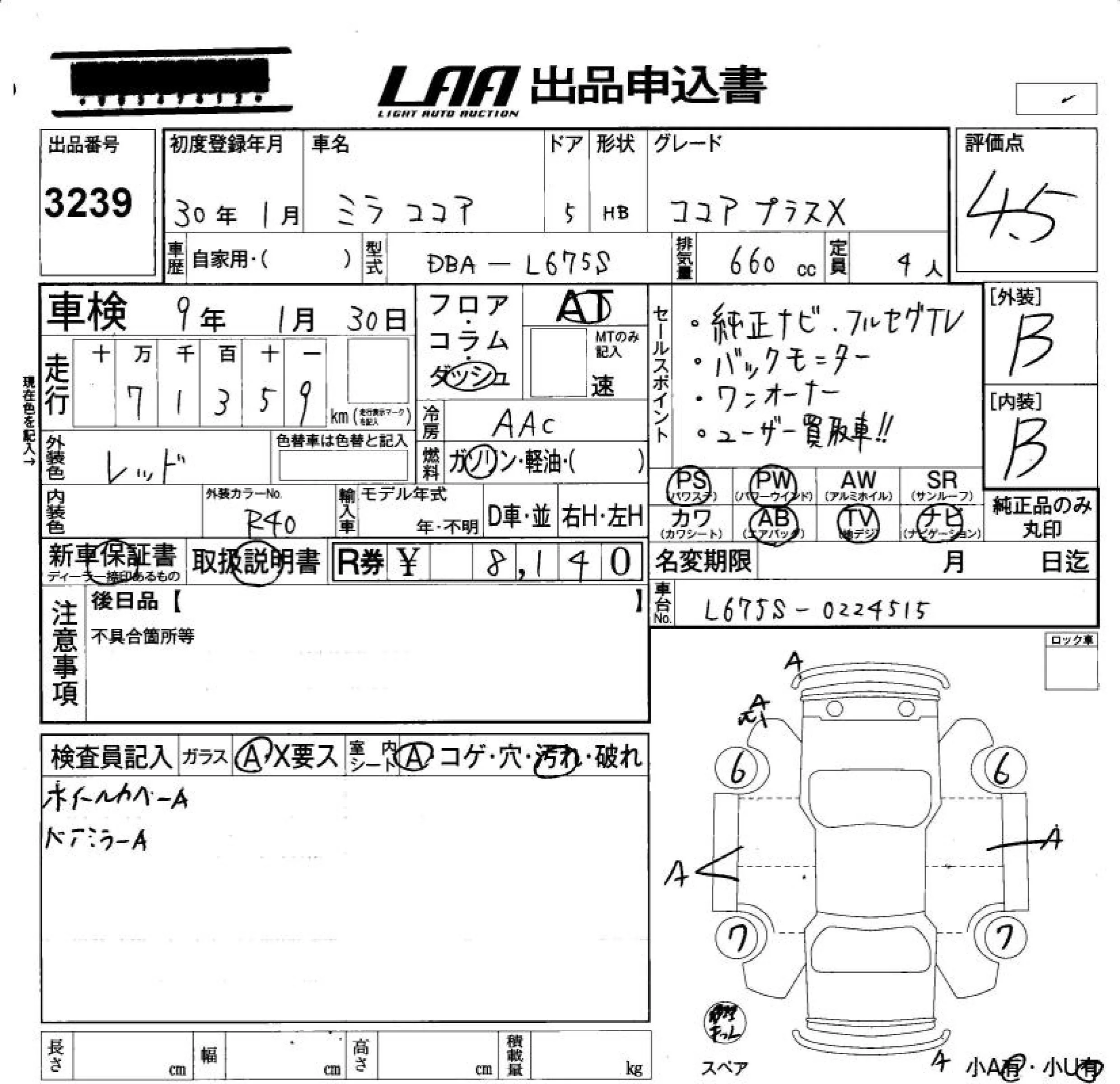 Daihatsu MIRA с аукциона Японии LAA Okayama лот № 3239