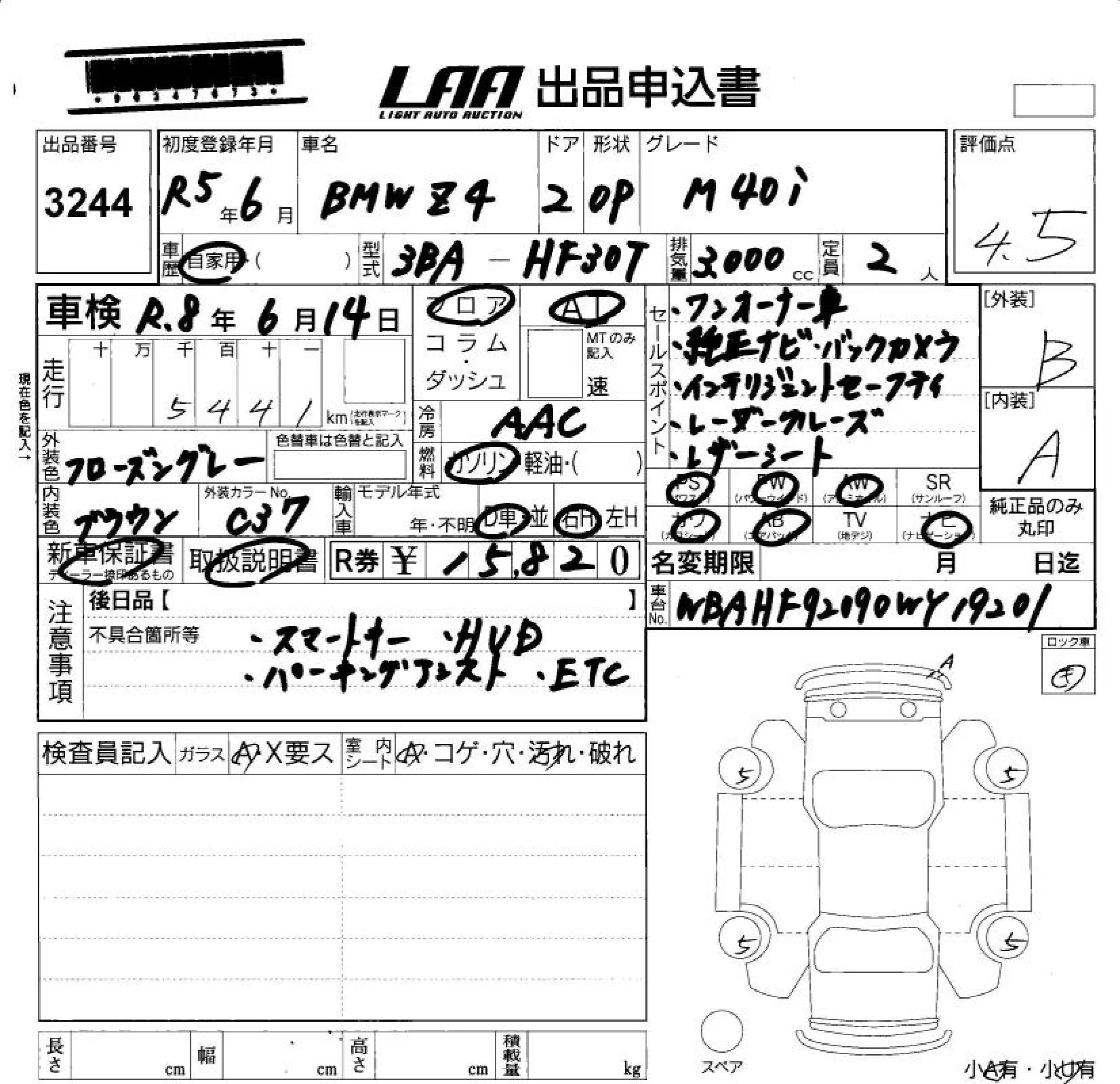 BMW Z4 с аукциона Японии LAA Okayama лот № 3244