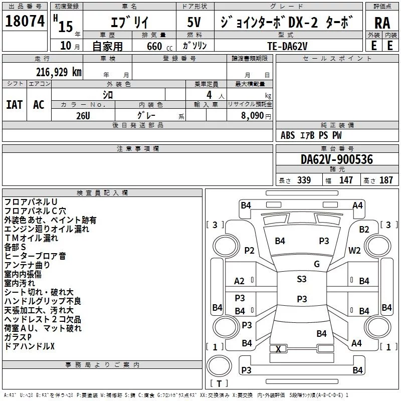 Suzuki EVERY с аукциона Японии TAA Yokohama лот № 18074