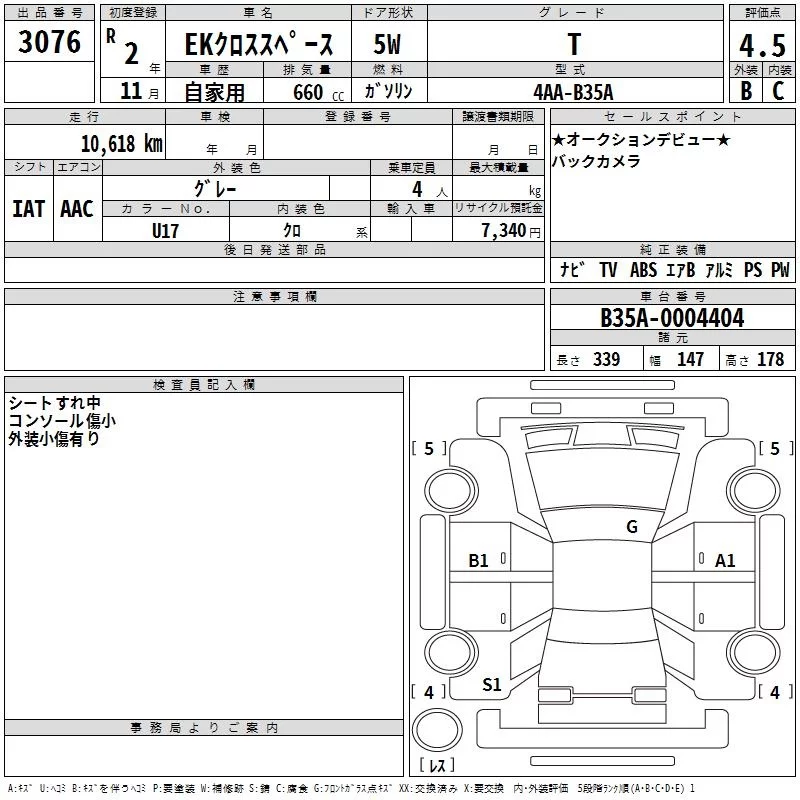 Mitsubishi EK X SPACE с аукциона Японии TAA Hyogo лот № 3076