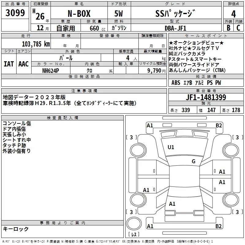 Honda N BOX с аукциона Японии TAA Yokohama лот № 3099