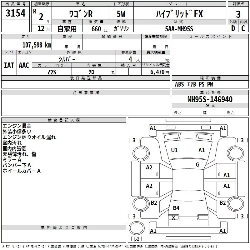 Suzuki WAGON R с аукциона Японии TAA Hyogo лот № 3154