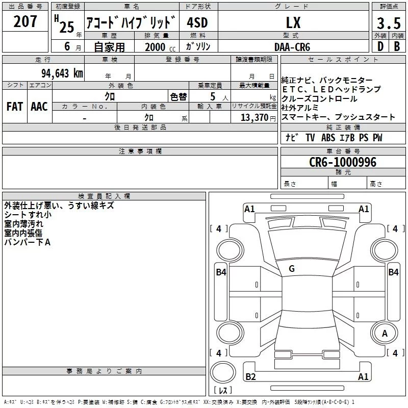 Honda ACCORD с аукциона Японии TAA Hyogo лот № 207