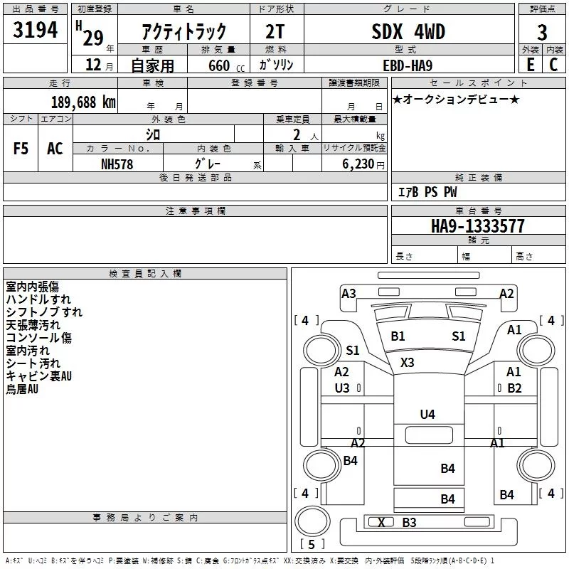 Honda ACTY TRUCK с аукциона Японии TAA Yokohama лот № 3194
