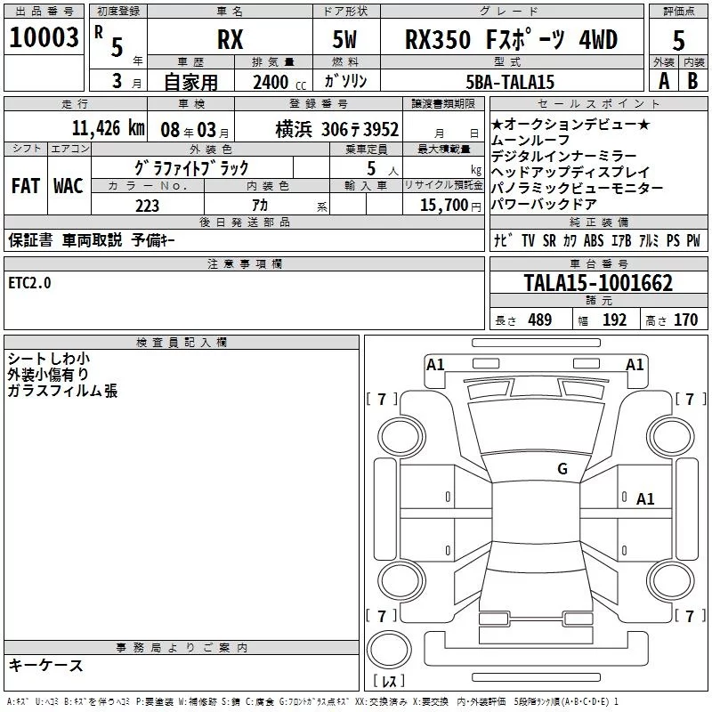 Lexus RX с аукциона Японии TAA Yokohama лот № 10003