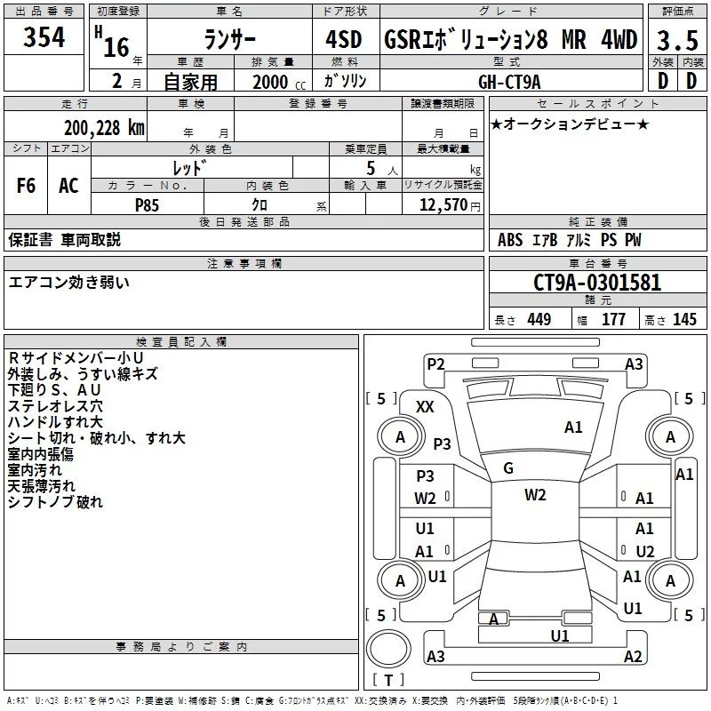 Mitsubishi LANCER с аукциона Японии TAA Hyogo лот № 354