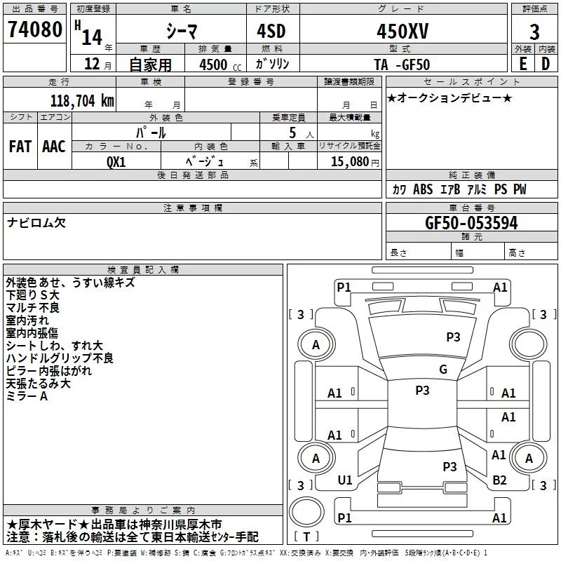 Nissan CIMA с аукциона Японии TAA Yokohama лот № 74080