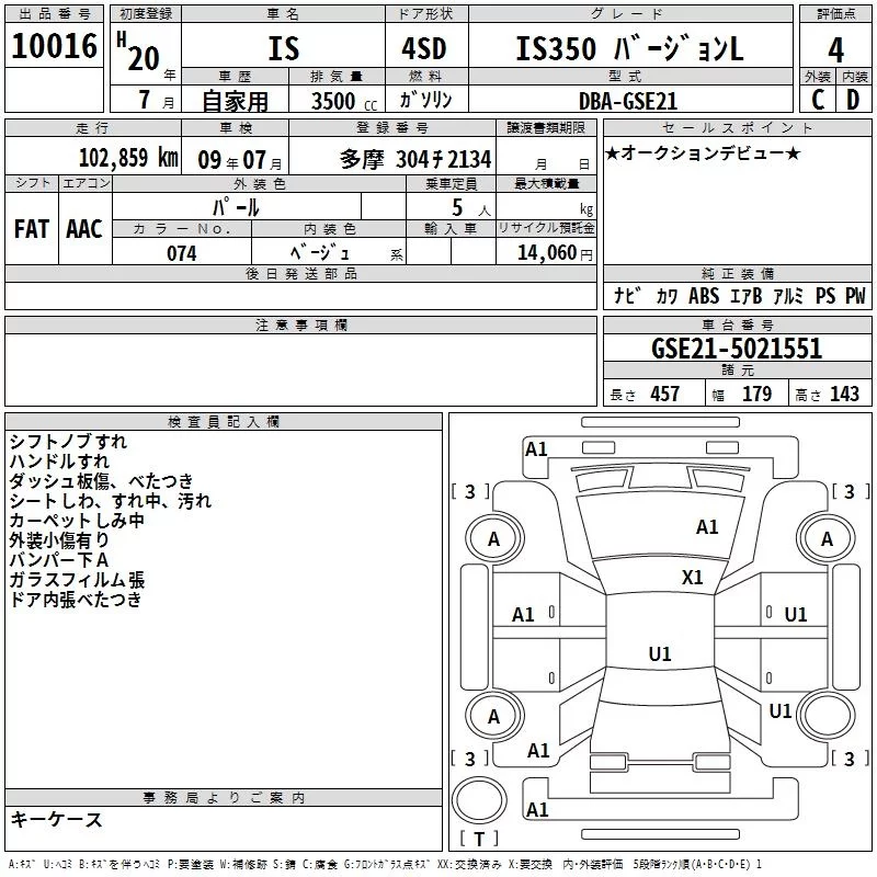 Lexus IS с аукциона Японии TAA Yokohama лот № 10016