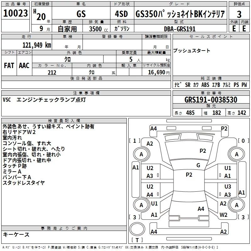 Lexus GS с аукциона Японии TAA Yokohama лот № 10023