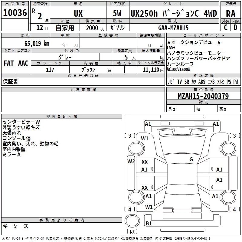 Lexus UX с аукциона Японии TAA Yokohama лот № 10036