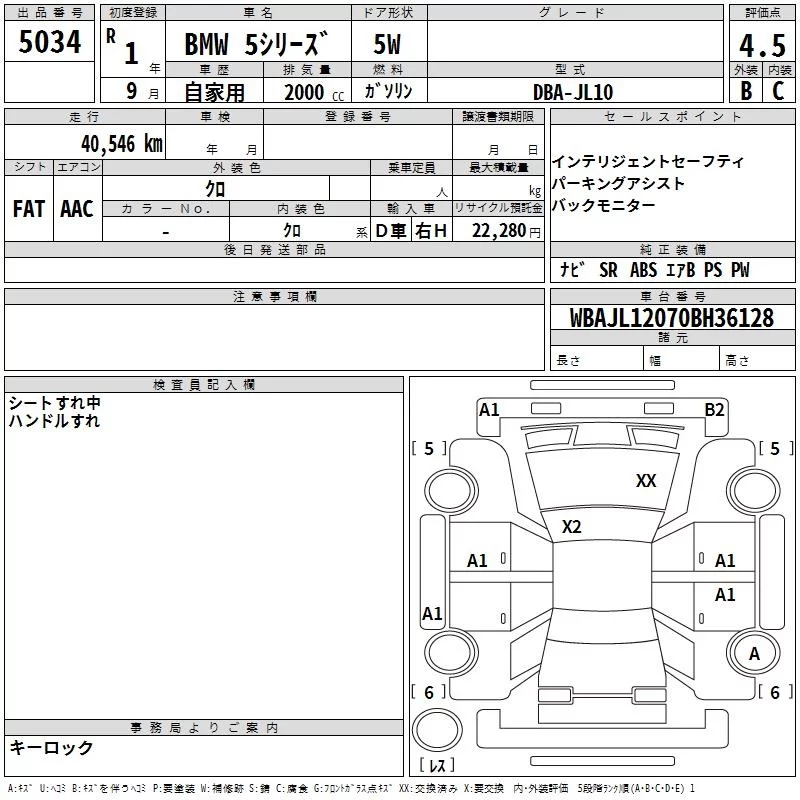 BMW 5-Series с аукциона Японии TAA Hyogo лот № 5034