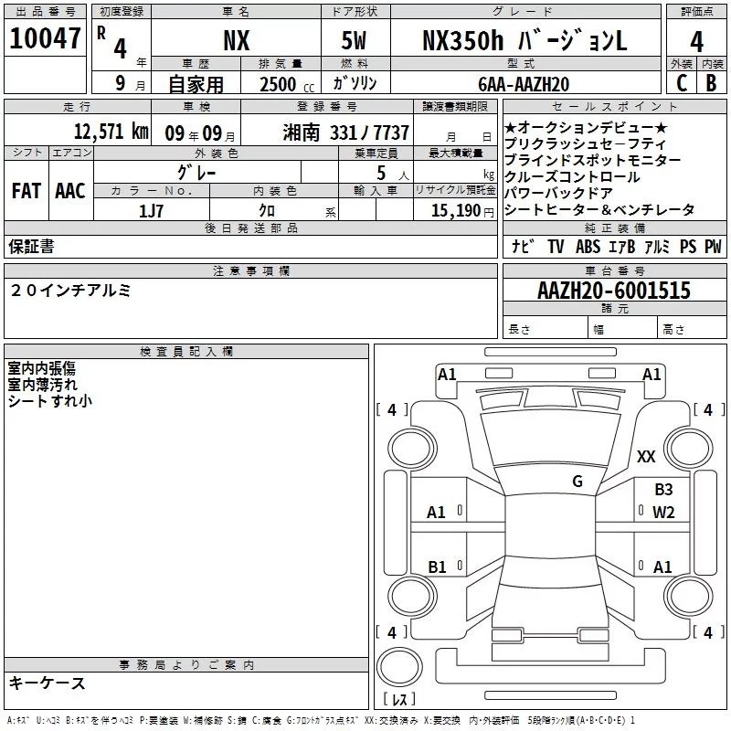 Lexus NX с аукциона Японии TAA Yokohama лот № 10047
