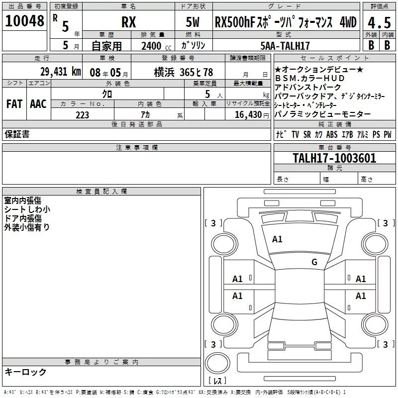 Комплектация: RX500hF Sports パフォ 4WD