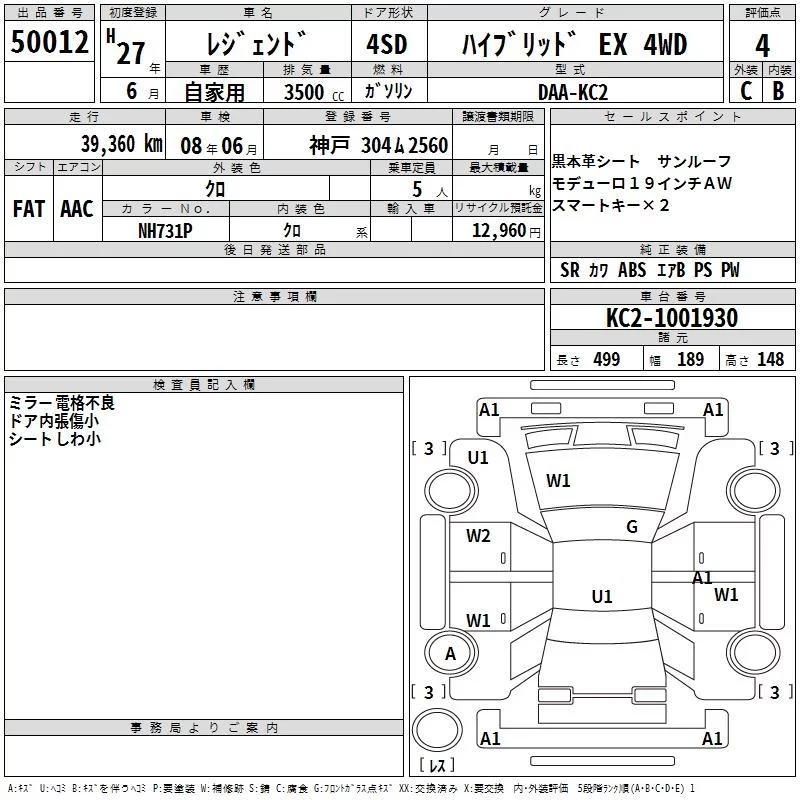 Honda LEGEND с аукциона Японии TAA Hyogo лот № 50012