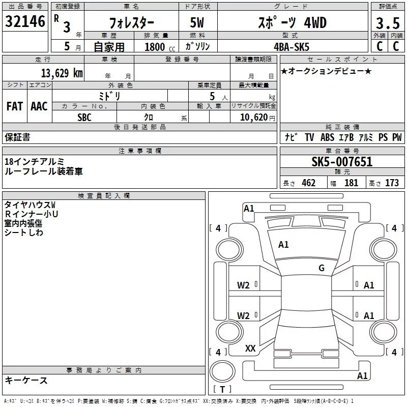 Subaru FORESTER с аукциона Японии TAA Yokohama лот № 32146