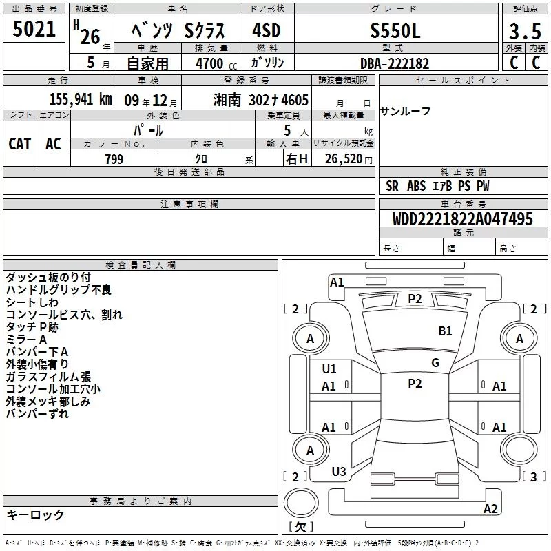Mercedes-Benz S CLASS с аукциона Японии TAA Yokohama лот № 5021