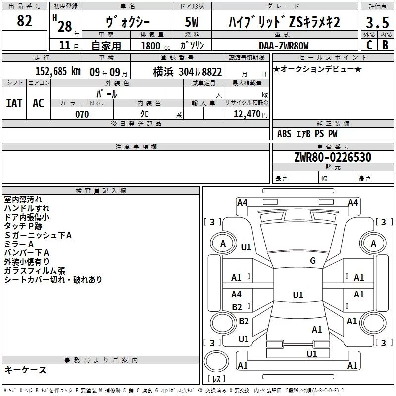 Toyota VOXY с аукциона Японии TAA Yokohama лот № 82