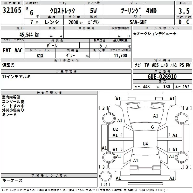 Subaru CROSSTREK с аукциона Японии TAA Yokohama лот № 32165