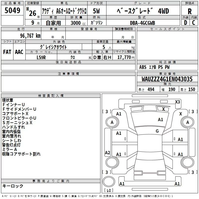 Audi A6 с аукциона Японии TAA Yokohama лот № 5049