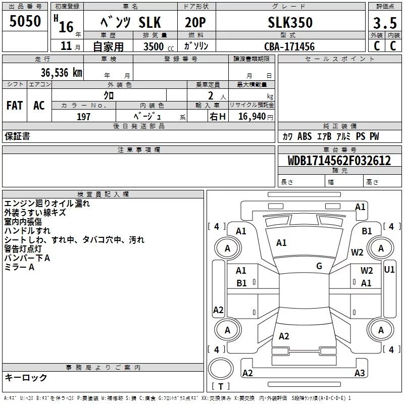 Mercedes-Benz SLK CLASS с аукциона Японии TAA Yokohama лот № 5050