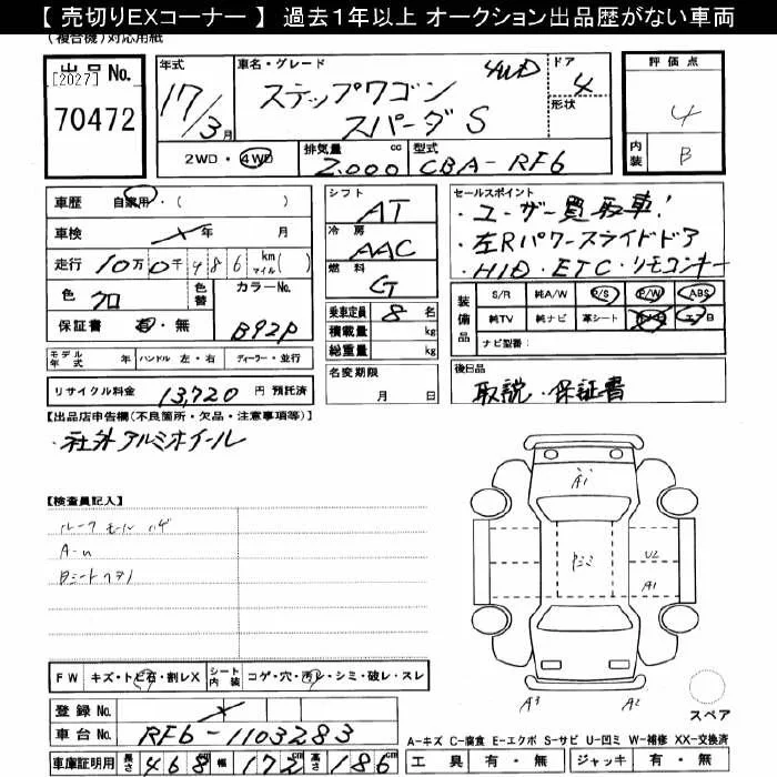 Honda STEP WAGON с аукциона Японии JU Gifu лот № 70472