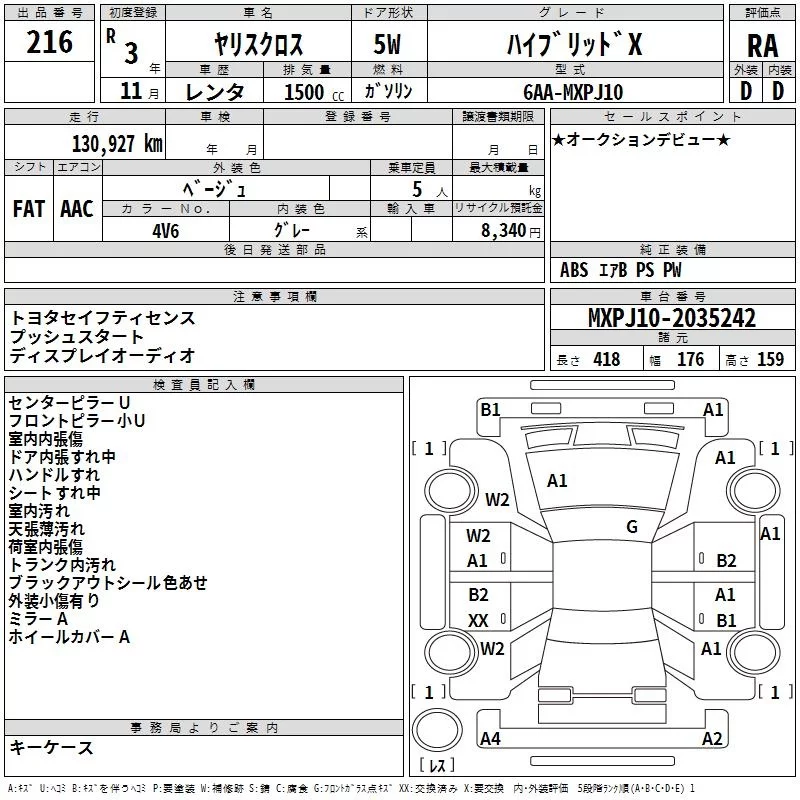 Toyota YARIS CROSS с аукциона Японии TAA Yokohama лот № 216