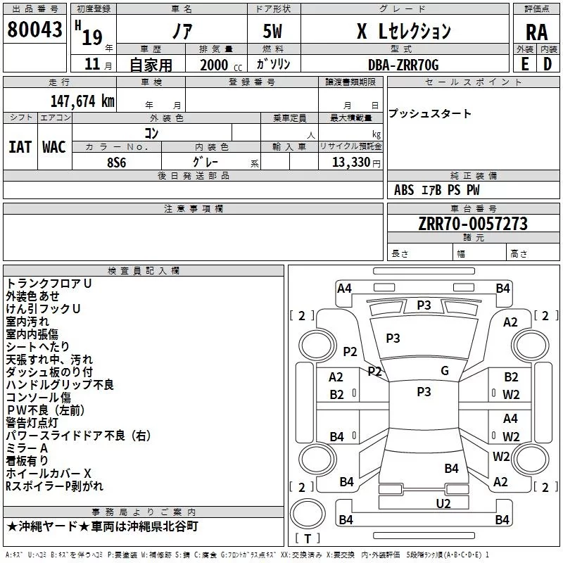 Toyota NOAH с аукциона Японии TAA Yokohama лот № 80043
