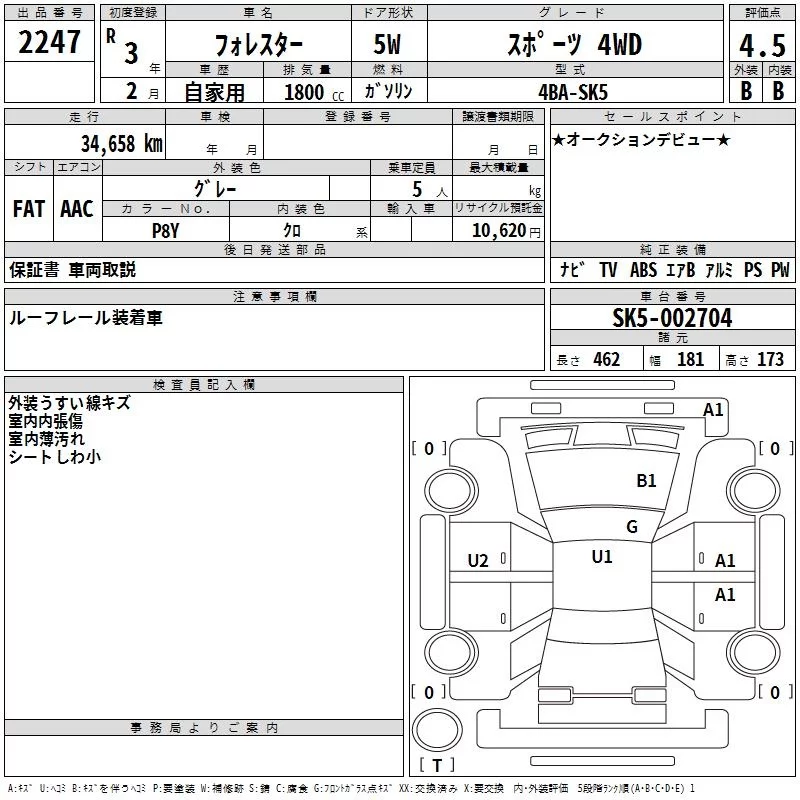 Subaru FORESTER с аукциона Японии TAA Hyogo лот № 2247