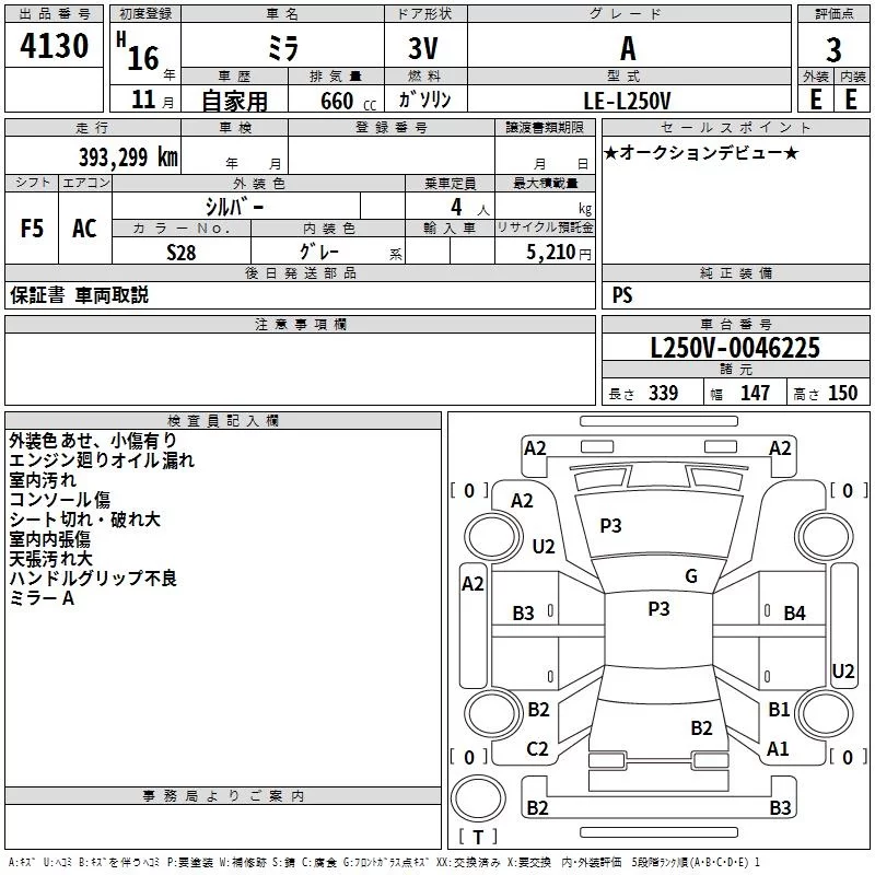 Daihatsu MIRA с аукциона Японии TAA Hyogo лот № 4130