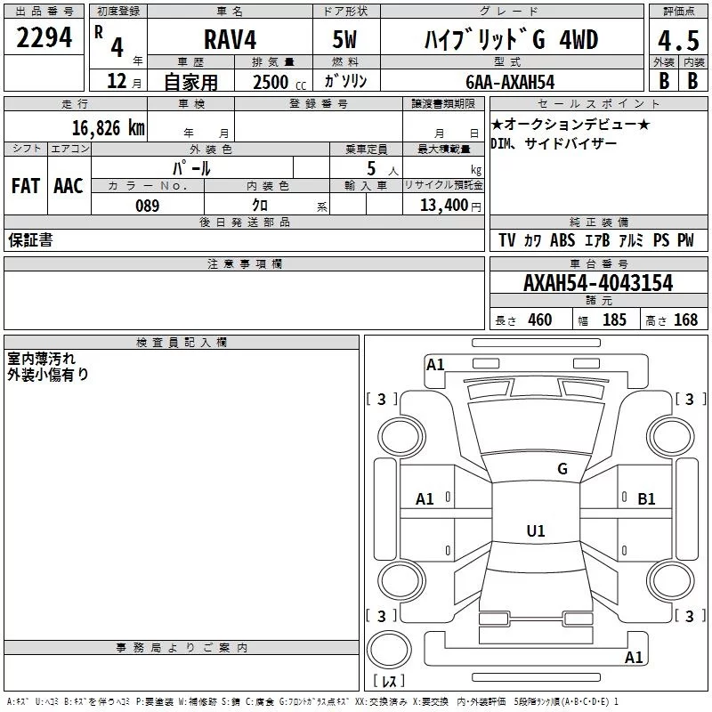 Toyota RAV4 с аукциона Японии TAA Hyogo лот № 2294