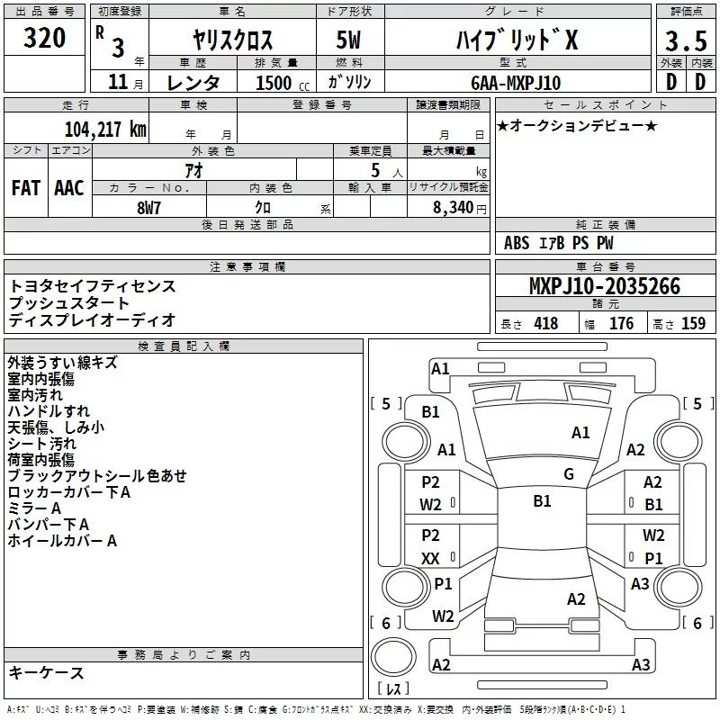 Toyota YARIS CROSS с аукциона Японии TAA Yokohama лот № 320