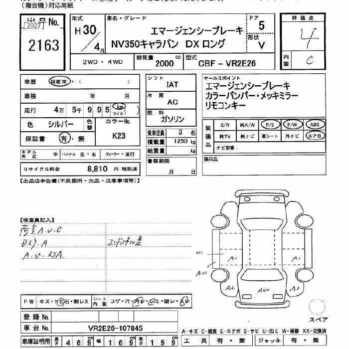 Nissan CARAVAN VAN с аукциона Японии JU Gifu лот № 2163