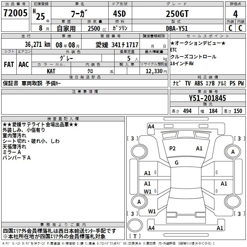 Nissan FUGA с аукциона Японии TAA Shikoku лот № 72005