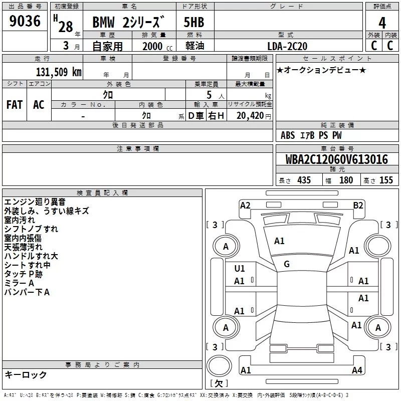 BMW 2-Series с аукциона Японии TAA Shikoku лот № 9036
