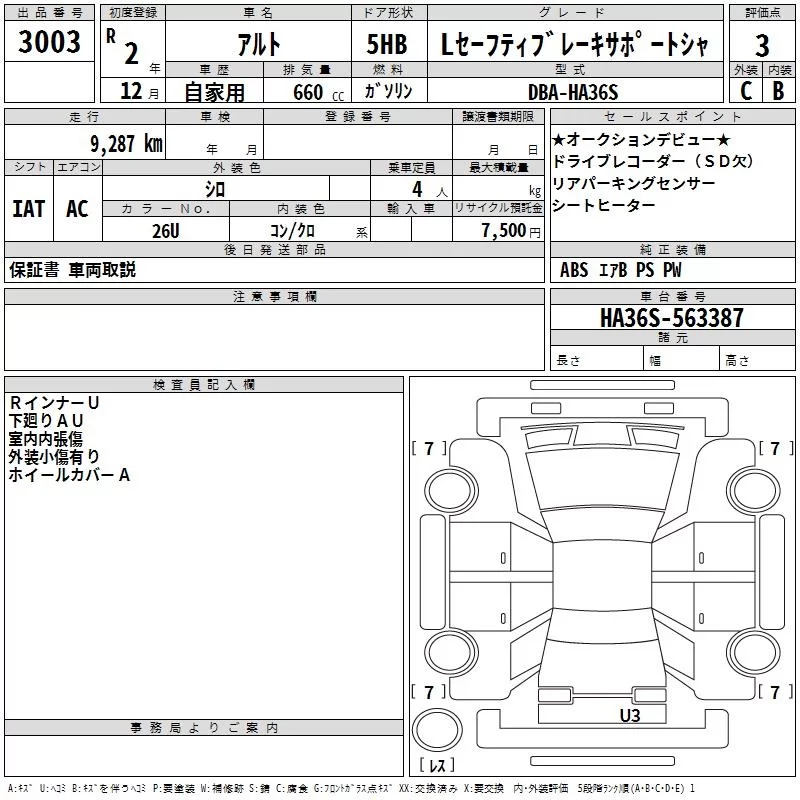 Suzuki ALTO с аукциона Японии TAA Kinki лот № 3003
