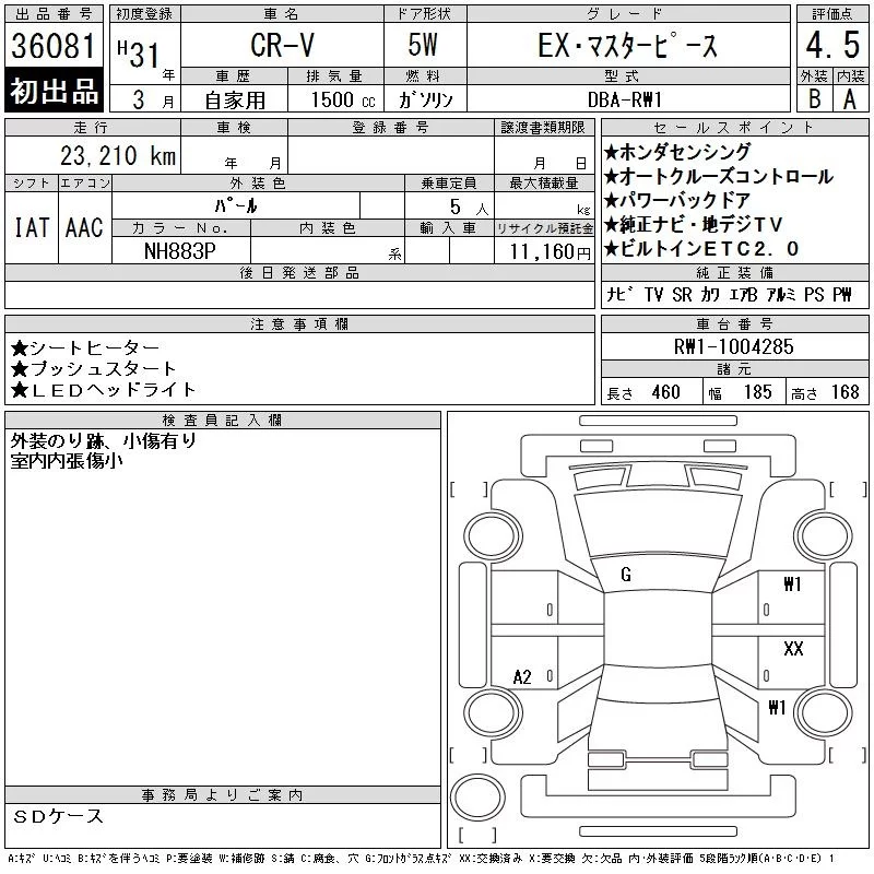 Honda CR-V с аукциона Японии CAA Tokyo лот № 36081