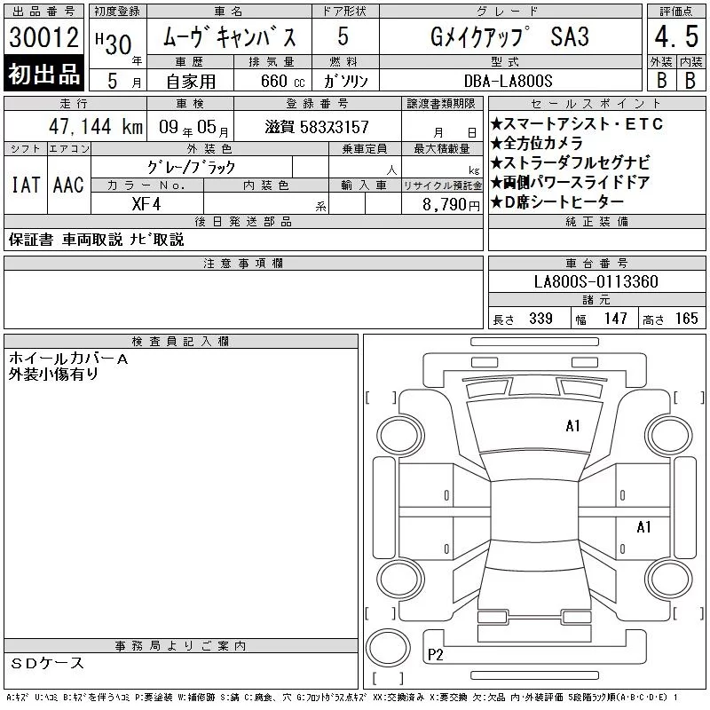 Daihatsu MOVE CANBUS с аукциона Японии CAA Gifu лот № 30012