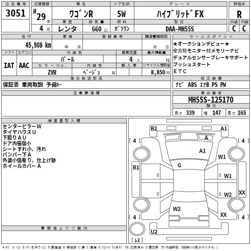 Suzuki WAGON R с аукциона Японии TAA Shikoku лот № 3051