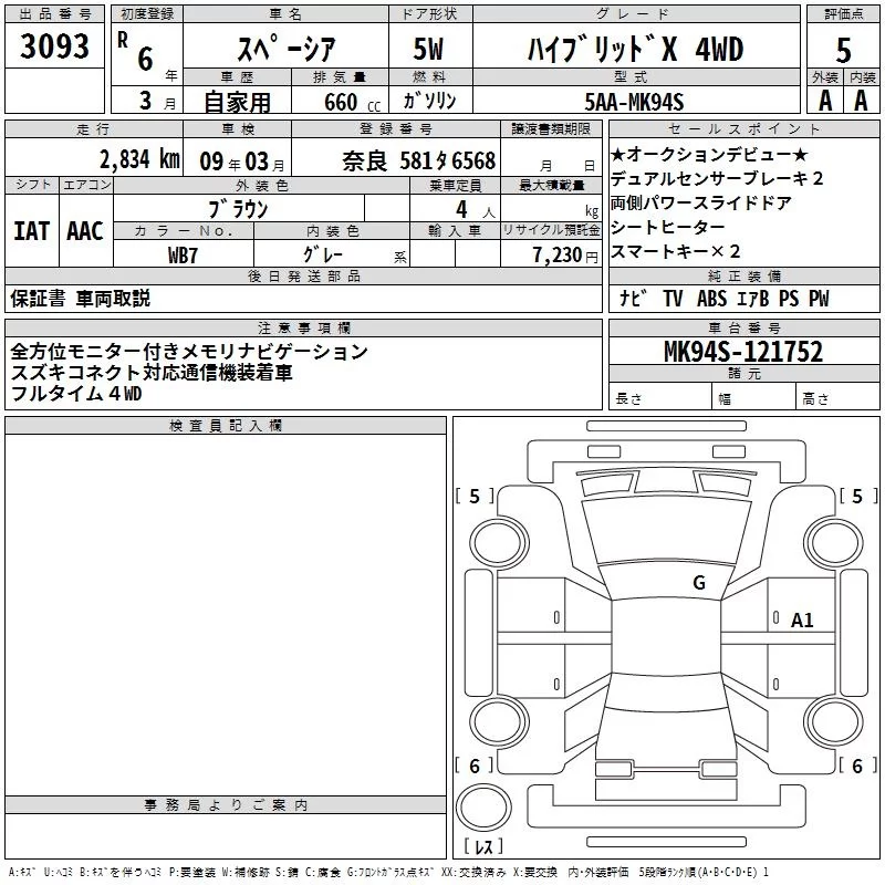 Suzuki SPACIA с аукциона Японии TAA Kinki лот № 3093