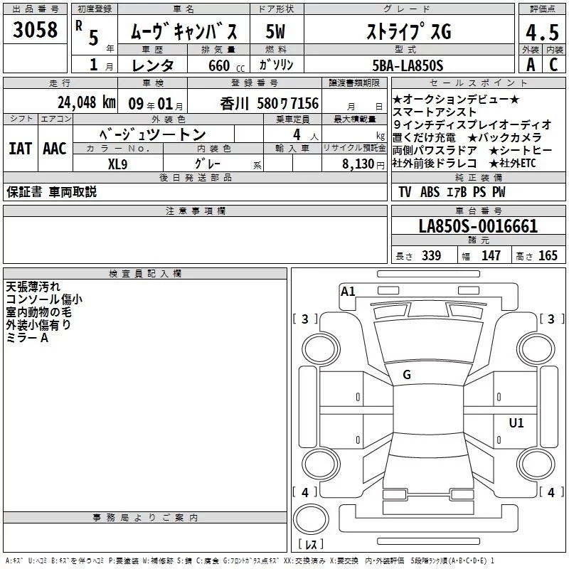 Daihatsu MOVE CANBUS с аукциона Японии TAA Shikoku лот № 3058
