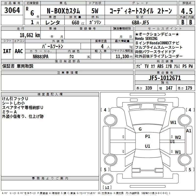 Honda N BOX с аукциона Японии TAA Shikoku лот № 3064