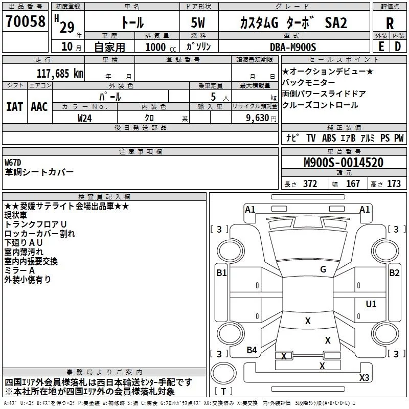 Daihatsu THOR с аукциона Японии TAA Shikoku лот № 70058