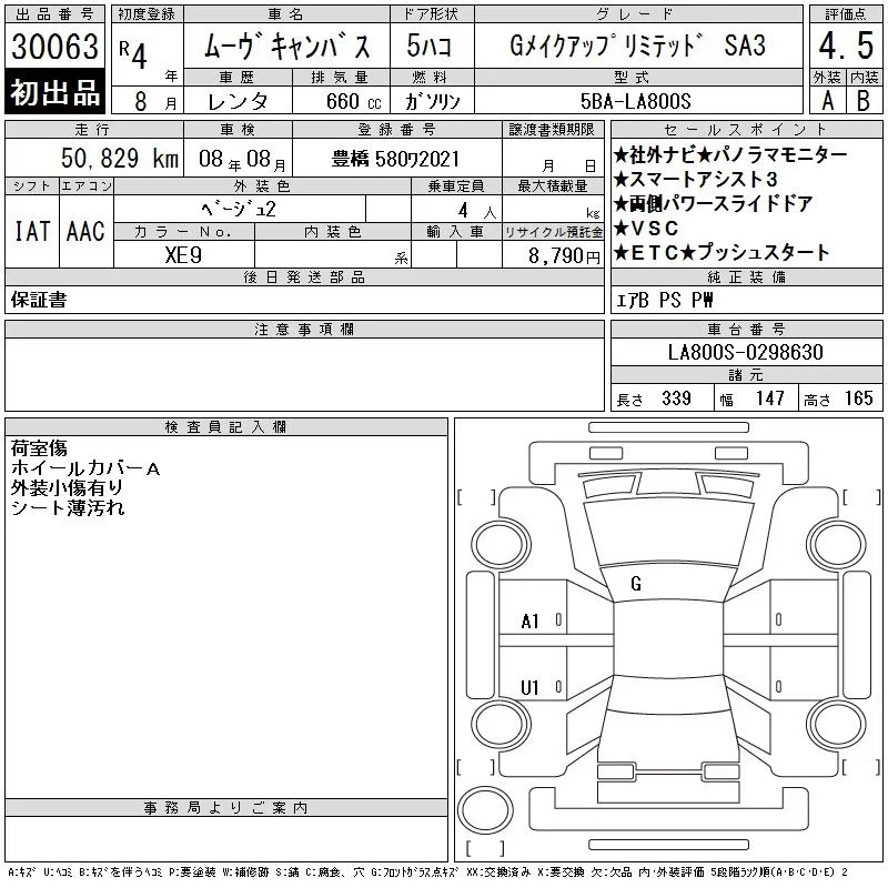 Daihatsu MOVE CANBUS с аукциона Японии CAA Gifu лот № 30063