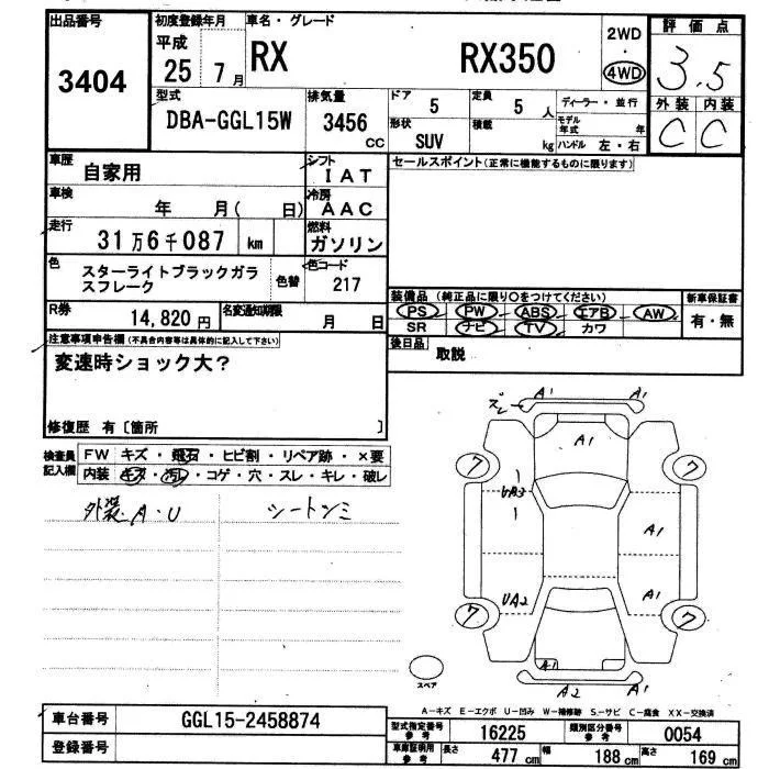 Lexus RX с аукциона Японии JU Yamaguchi лот № 3404