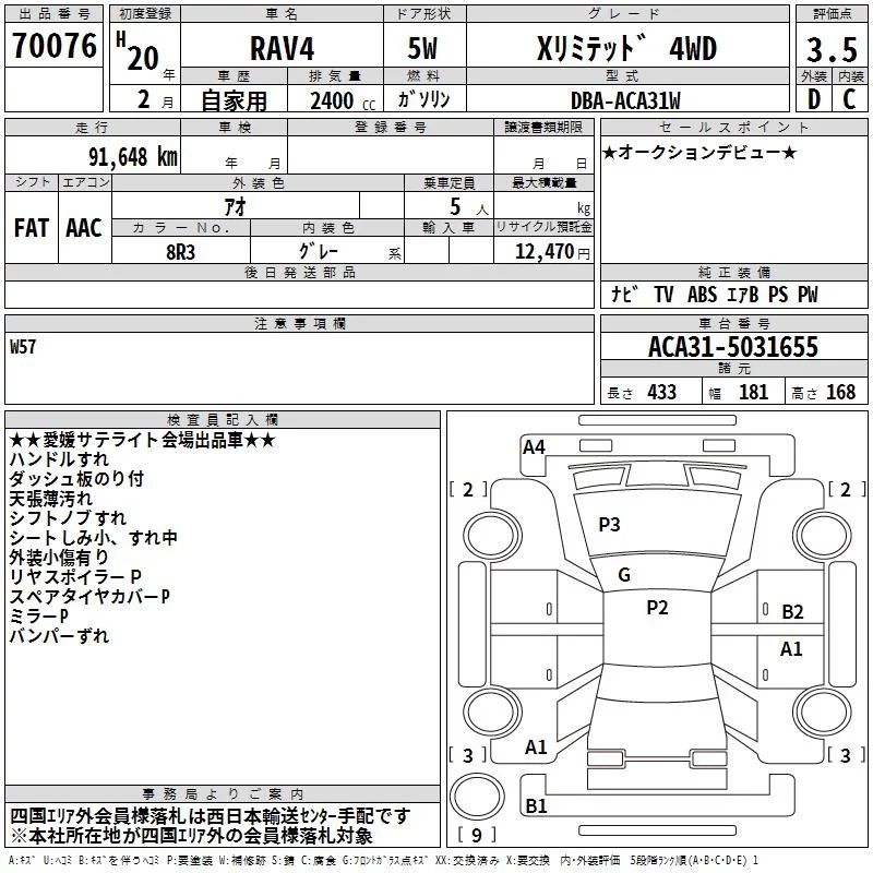 Toyota RAV4 с аукциона Японии TAA Shikoku лот № 70076
